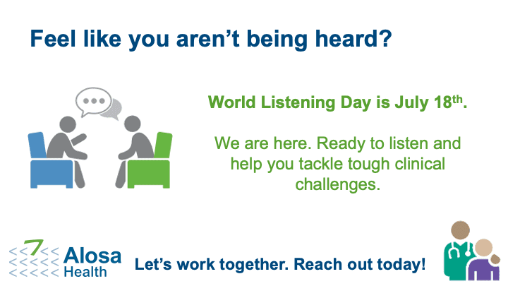 World Listening Day is July 18th! Here at Alosa, we want you to feel heard. Contact us today for help with best practices in the clinical setting.